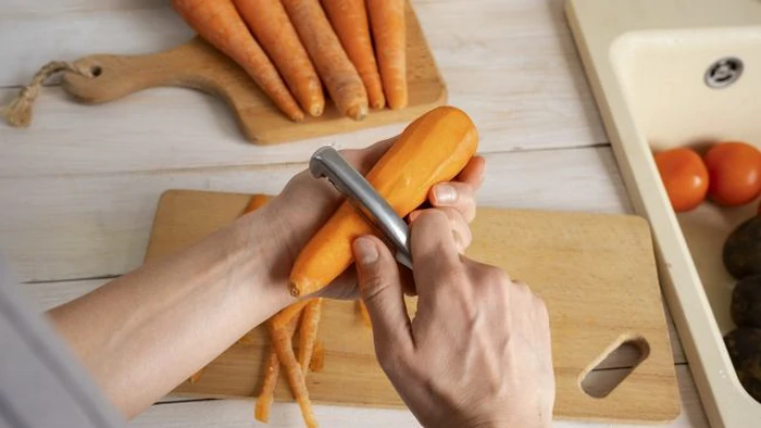 - A hagymát és a sárgarépát vajban pirítsuk puhára és enyhén aranyszínűre.